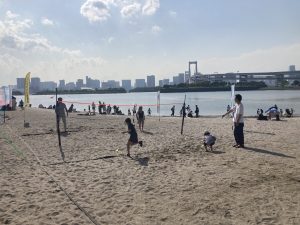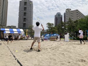 エアバドミントン以外にも様々なビーチスポーツを体験でき、同時に大会を開催している競技もあり、