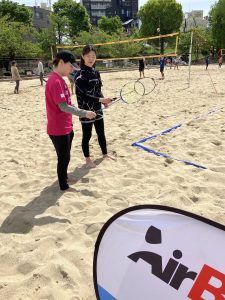 大阪市桜ノ宮ビーチにて、4/18(土)エアバドミントン体験会を開催しました。